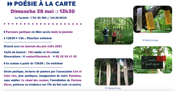 Du 15 au 28 mai 2023, j'ai été en résidence d'écriture, à La Factorie, Maison de poésie/ Normandie, sur le thème "Chanter les rivières", avec la poétesse Marcella, avec qui nous avons travaillé plus particulièrement sur le corps.